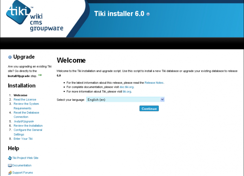 Der Tiki Installer beinhaltet wichtige Links zu den ReleaseNotes und zur Documentation. Schaue Dir diese Dokus sicherheitshalber vor der Installation an.